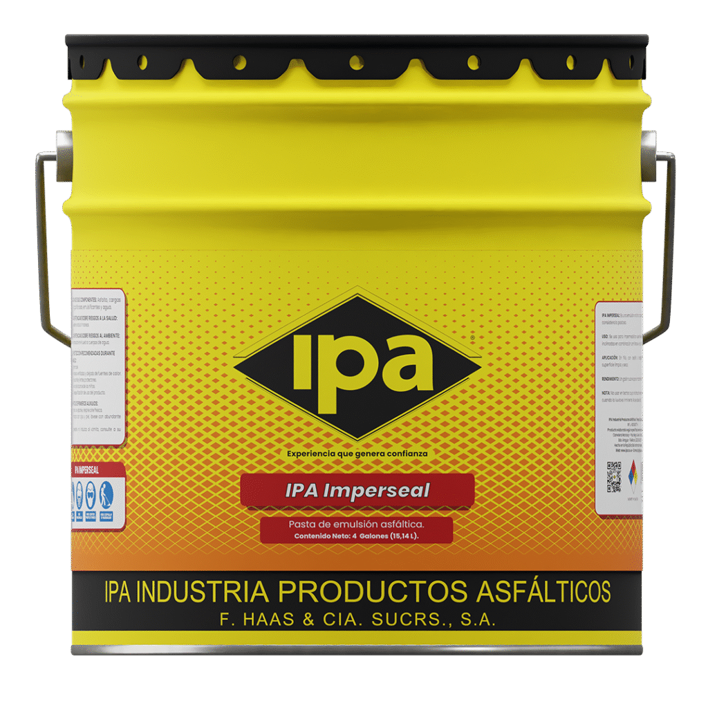 PA Imperseal es una emulsión asfáltica de consistencia pastosa, diseñada especialmente para impermeabilizar techos, terrazas y balcones, tanto transitables como no transitables. Se aplica en membranas asfalticas, y forma parte de un sistema de capas que protege las superficies contra la humedad y filtraciones. Es ideal para soluciones de impermeabilización profesional en obras nuevas o mantenimientos.
